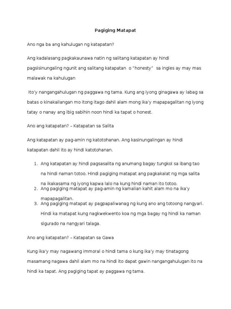 Pagiging Matapat At Masunurin Pdf